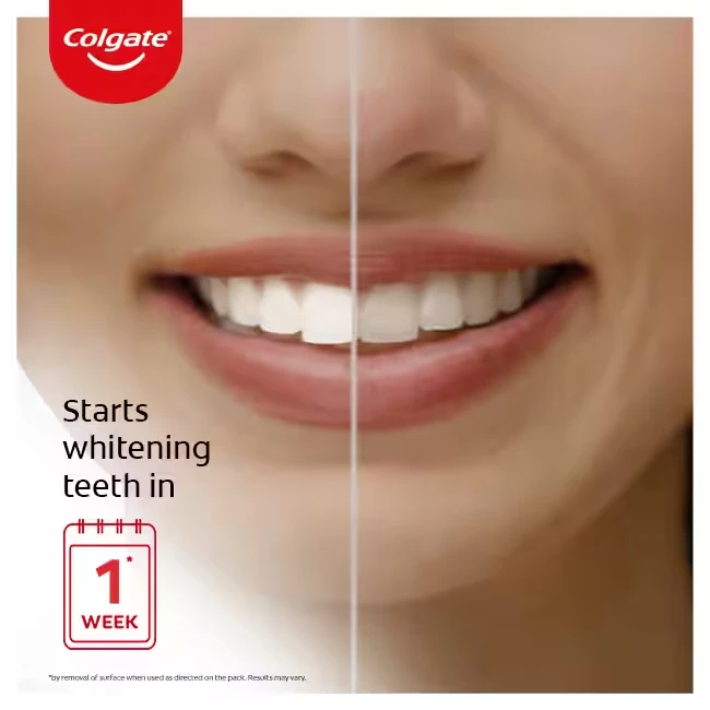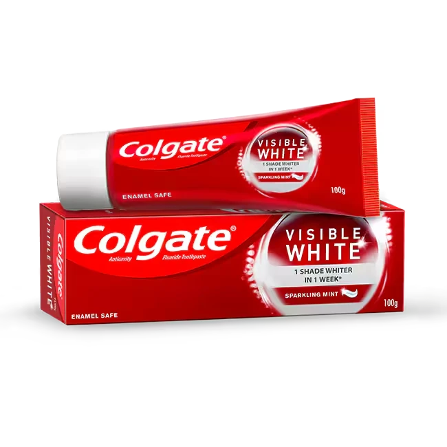 Colgate Visible White Toothpaste, formulated with whitening accelerators, starts whitening your teeth in 1 week*. It gently removes surface level stains to give you a brighter smile. It is enamel-safe and can be used everyday.